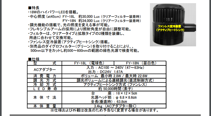 FUNATECH船越龍熱銷款表面檢查燈FY-100R已停產(chǎn),替代型號為FY-18(可加綠色濾光片)